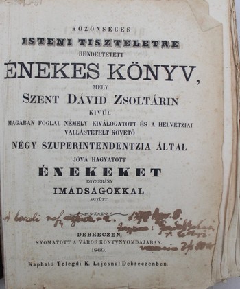 Gonda Balázs énekeskönyvének címlapja a lelkész kézírásával,